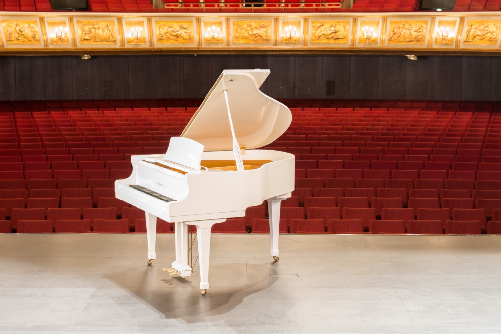 Stutzflügel Yamaha G2, 170 cm Weiß poliert - der Flügel für den besonderen Anlass und beliebt für Fotosessions und Videoproduktionen. Preise und Kontakt